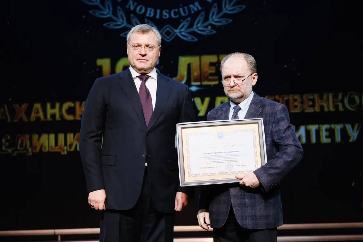 Отдельно губернатор Астраханской области Игорь Бабушкин отметил труд сотрудников и студентов АГМУ во время пандемии и активную волонтёрскую работу по поддержке военнослужащих, находящихся в зоне СВО, и их семей.